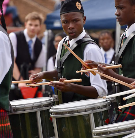 Today, the Pipe Band still endures through the hard work and dedication of many tutors who have given up their time to ensure that not only does the School have a pipe band but also that the band does exceptionally well in competitions. The band’s tutors are drawn from pipe bands with just as an illustrious history as the King Edward VII School Pipe Band. These include the South African Irish Pipes and Drums, Transvaal Scottish, Richmond Avenue and Benoni Mac-Talla.